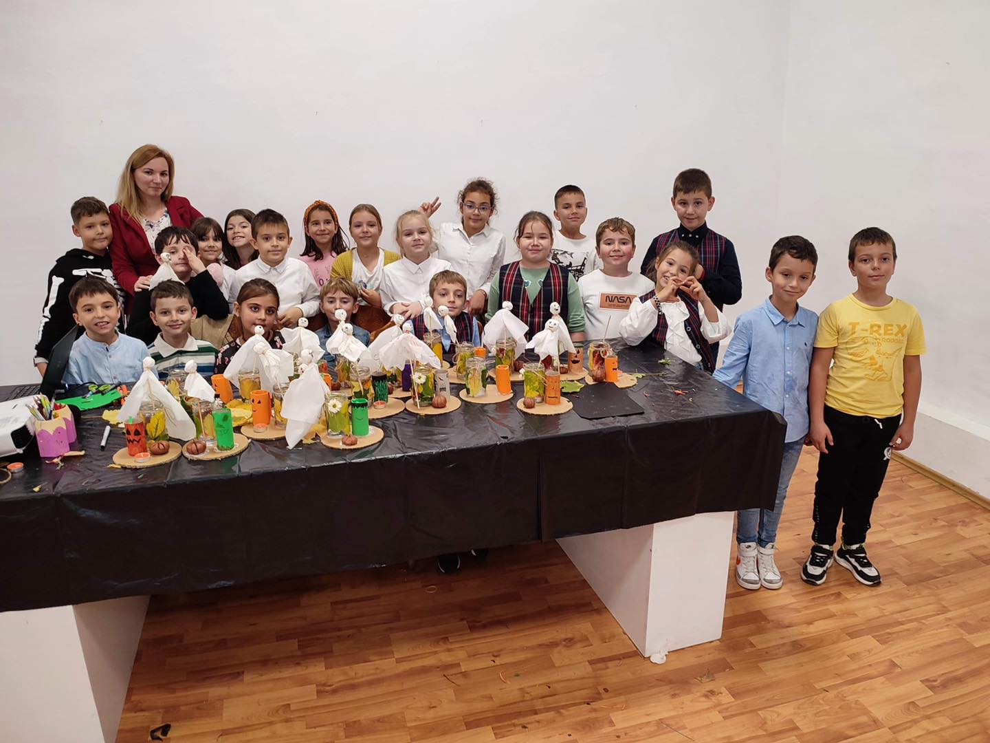 ”Copiii au folosit borcane, carton refolosibil, lut, hârtie colorată, frunze de toamnă, crenguțe și diverse alte materiale, pentru a realiza decorațiuni formate din câte patru piese. Provocarea a fost cu atât mai mare, cu cât, în doar două ore, ei au vizitat și expoziții și au vizionat un tutorial, deci au trebuit să fie creativi dar și bine organizați, pentru a-și îndeplini tema, respectând termenul de finalizare. Ei și-au dezvoltat imaginația și îndemânarea, creând personaje care mai de care mai haioase, dar au conștientizat și ce înseamnă responsabilitatea de a realiza anumite obiecte,încadrându-se în timpul alocat, reprezentând aceasta o pregătire pentru când vor fi mari. În prima serie, au participat la activități elevi ai Școlii Gimnaziale „Alexandru Ștefulescu” din Târgu Jiu, care au vizitat o parte din expoziția de istorie a muzeului. La rândul lor copiii de la cea de-a doua serie, pentru că erau, majoritatea, familiarizați cu expoziția de istorie,paricipând frecvent la activitățile organizate de muzeu, au fost invitați să vizioneze expoziția temporară a elevilor de la Secția de Arhitectură a Liceului de Artă „Constantin Brăiloiu”, care a fost vernisată chiar în timpul atelierului lor. Mare le-a fost bucuria copiilor, când elevii de la arhitectură și profesorul lor au acceptat invitația să vizioneze și ei mica lor expoziție, organizată după terminarea lucrărilor”, au transmis reprezentanții Muzeului Județean Gorj.