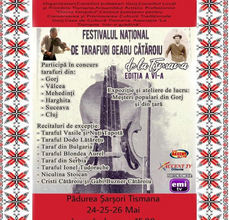 Autoritățile locale din Tismana au organizat o nouă ediție, a VI-a, a festivalului național de tarafuri „Geagu Cătăroiu”, spectacolele începând miercuri după-amiază și urmând să se încheie în această seară.