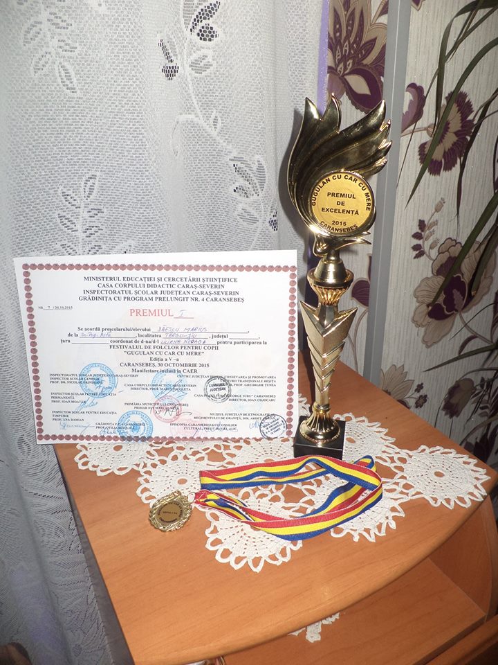 Festivalul de Folclor pentru Copii “Gugulan cu car cu mere” se află la cea de-a V-a ediţie şi s-a desfăşurat la Caransebeş, în data de 30 octombrie. Anul acesta, festivalul a adunat 456 de copii, cu vârste cuprinse între 3 şi 19 ani, din judeţele: Caraş-Severin, Timiş, Arad, Hunedoara, Alba, Cluj, Gorj şi Dolj. Marius Dăescu, tânărul gorjean care şi-a adjudecat Premiul I şi Trofeul secţiunii “Folclor”, are 15 ani şi este elev al Şcolii Populare de Artă din Târgu-Jiu, unde se pregăteşte cu prof. Liliana Neoagă Ciochină; de asemenea, el mai frecventează şi cursurile Palatului Copiilor Târgu-Jiu, la clasa prof. Cristina Olteanu, şi este colaborator al Ansamblului Ciupercenii Noi din Dolj.