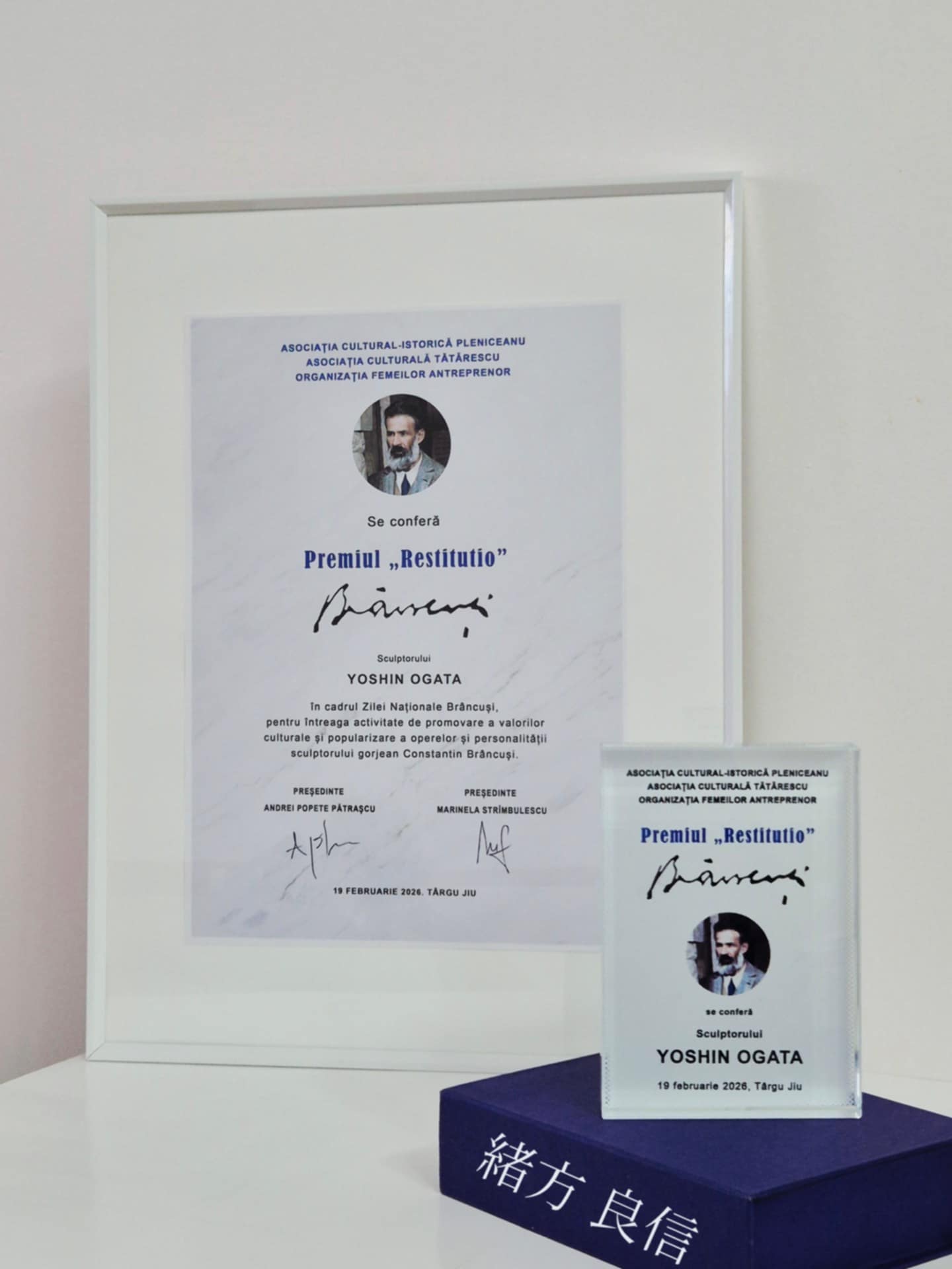 Premiul Național „Restitutio. Brâncuși” – ediția a VII-a (2026) a fost acordat zilele trecute sculptorului japonez Yoshin Ogata, artist cu activitate internațională, remarcat pentru rigoarea formei, esențializarea expresiei și preocuparea constantă pentru dimensiunea spirituală a sculpturii.