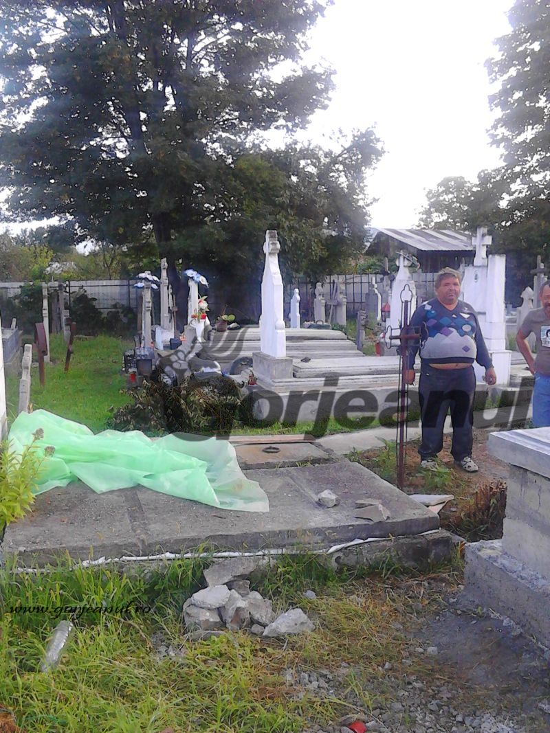 preotului fiind martorul respectivului. Pîrvuțoiu nu a mai chemat poliția la fața locului, iar eu am fost obligat să scot alți bani din buzunar să plătesc refacerea lucrării. Am refăcut construcția a doua- a treia zi, mai mică cu 20 cm în privința înălțimii”, a declarat Radu Pană. Omul susține că la a doua intervenție a constructorilor, preotul paroh nu și-a făcut simțită prezența în cimitir.
