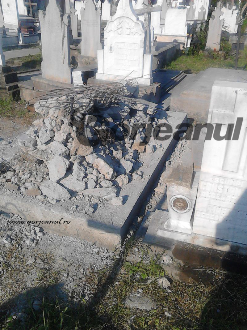 lucrărilor apropiate de final, în cimitir și-a făcut apariția preotul paroh Ion Pîrvuțoiu, care le-a cerut lucrătorilor, de față cu proprietarul Radu Pană, să distrugă construcția aproape gata, în caz contrar va chema poliția. Muncitorii s-au apucat să spargă cu barosul tot ce au muncit într-o săptămână, în timp ce proprietarul încerca prin rugăminți să-l convingă pe preot că nu ar fi făcut nimic greșit, neocupând un teren care nu-i aparținea și nerealizând un loc de veci mai înalt decât altele făcute în cimitir.