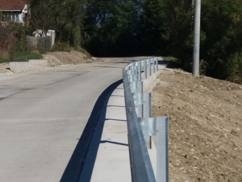 consolidarea terenului pe o lungime de aproximativ 150 de m și adâncime de peste 20 m, realizarea de drenuri longitudinale, șanțuri betonate, refacere terasamente, sistem rutier armat cu plasă sudată, montare parapeți metalici.