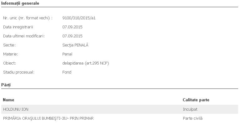 Fostul preşedinte al Asociaţiei de Proprietari nr.6 din Bumbeşti-Jiu, Ion Holdun, a fost cel care până în perioada 2011-2012 a colectat de la locatarii unui bloc din localitate, imobilul având cinci scări şi 100 de apartamente, peste 70.000 de lei, necesari achitării a 20% din investiţia realizată în colaborare şi cu autorităţile locale. De altfel, asociaţia trebuia să suporte doar 20% din investiţie, în timp ce primăria alte 30 de procente. În final, primăria a achitat 50%, asta deoarece banii colectaţi de la asociaţia de proprietari nu au mai ajuns în contul firmei de construcţii care a realizat investiţia. Delapidarea s-a constatat de fapt doar în momentul în care firma a sesizat autorităţile că nu a primit de la asociaţie banii în cauză. “Atunci noi am solicitat comisiei de cenzori a asociaţiei să verifice câţi bani s-au colectat şi de la cine ca să putem constata dacă într-adevăr banii s-au furat. Noi aveam deja semnale în acest sens, mai mulţi proprietari prezentându-ne chitanţe în care se arăta că au plătit suma separată pentru investiţia la bloc. După verificarea comisiei am avut date certe că delapidarea s-a produs, dar şi că Ion Holdunu consumase treptat într-un an de zile banii locatarilor pentru reabilitarea termică a blocului. Comisia de cenzori a asociaţiei l-a destituit pe Holdunu din funcţie şi a înaintat constatările verificării făcute organelor de anchetă”, transmite primarul localităţii, Constantin Bobaru.