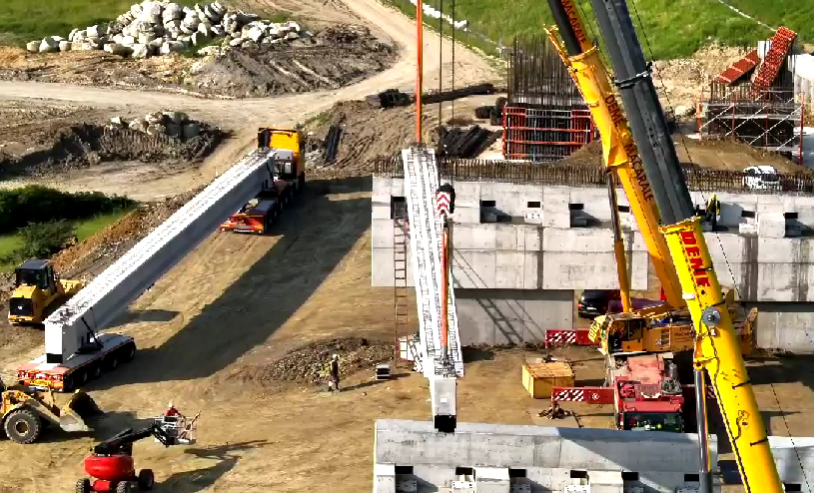 Se montează prima grindă pe lotul 2 al Autostrazii Sibiu-Pitești, anunță CNAIR