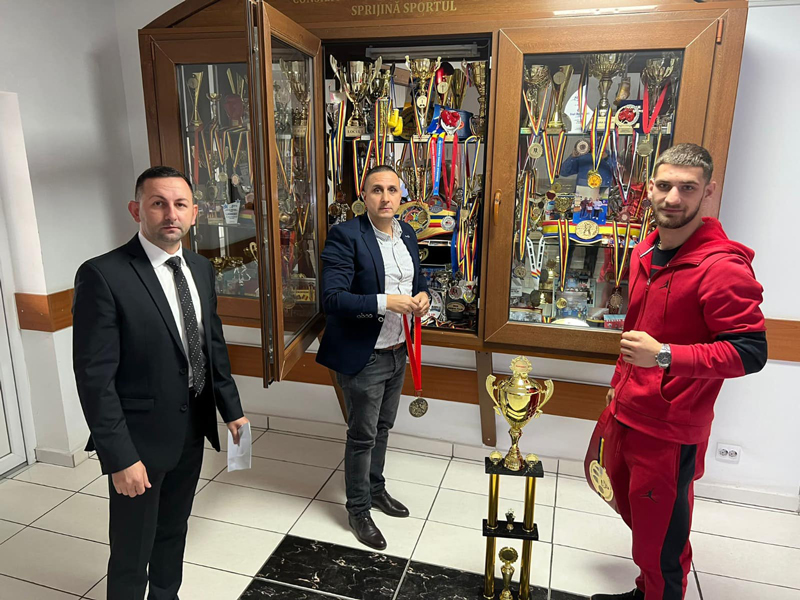 Andrei mi-a fost oaspete, astăzi, la Primăria orașului Rovinari, ocazie cu care am încercat să adăugăm în vitrina cu trofee și ultima cupă. Nu mai era loc, iar asta spune totul despre nivelul de performanță la care au ajuns sportivii noștri.