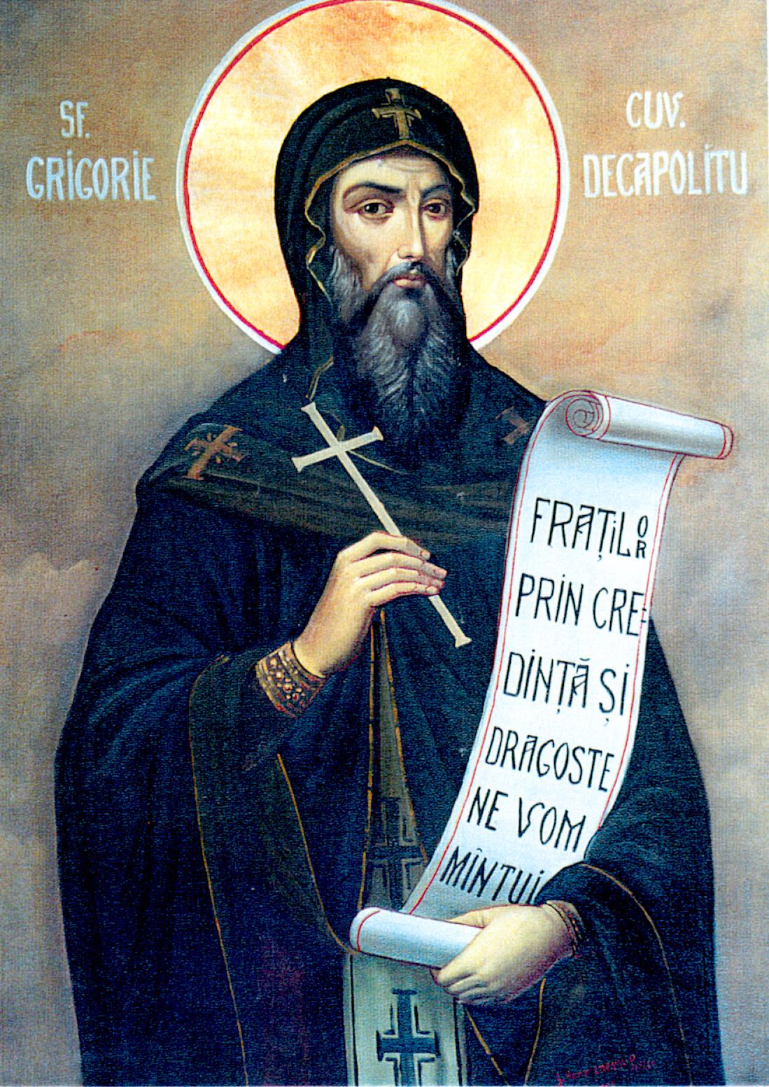 În ziua de 20 noiembrie a fiecărui an sărbătorim şi pe Sfântul preacuviosul părintele nostru Grigorie Decapolitul, ocrotitorul Olteniei, ale cărui cinstite moaşte se află în biserica mânăstirii Bistriţa din judeţul Vâlcea. De sute de ani, credincioşii olteni şi îndeosebi cei din