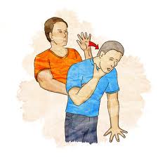 -peste pumnul strâns se trece cealaltă mână și se efectuează mișcări de împingere în sus, rapid și cu forță. În cazul copiilor miscările se efectuează mai blând.