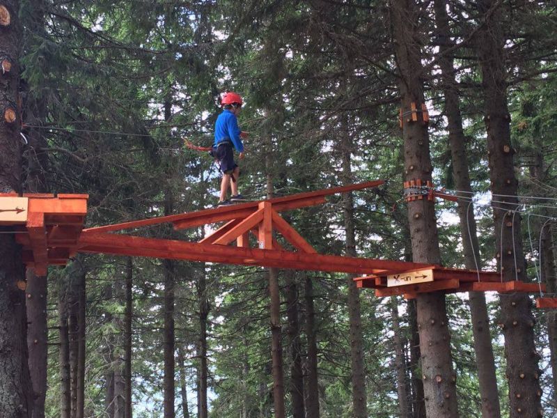 întinde pe o suprafaţă de patru hectare, la dispoziţia celor dornici de mişcare fiind nouă ateliere. Traseul de tiroliene este compus din șase tiroliene în lungime de 240.