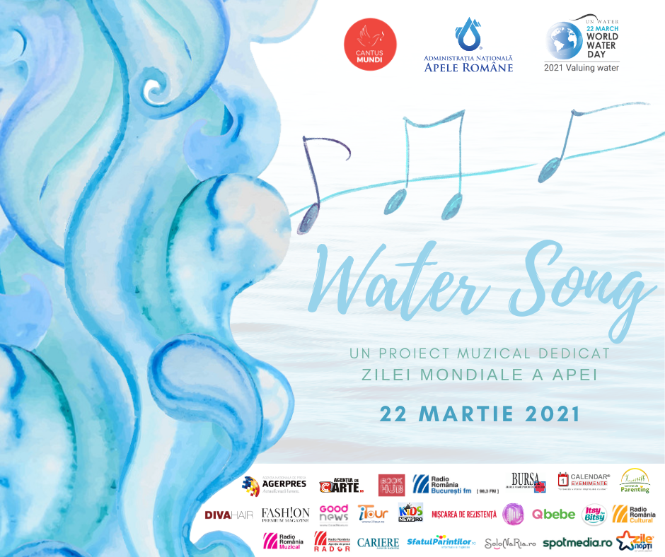 Programul Național Cantus Mundi România și Administrația Națională „Apele Române” lansează astăzi, de Ziua Mondială a Apei, primul proiect sonor participativ dedicat apei, creat de copiii din România. Producția „Water Song” (Cântecul Apei) reprezintă o creație muzicală originală și colectivă, realizată în premieră națională cu participarea copiilor din comunitatea de 60.000 de membri ai Programului Național Cantus Mundi, cel mai mare program de integrare prin muzică din România, derulat de Corul Național de Cameră „Madrigal – Marin Constantin”.