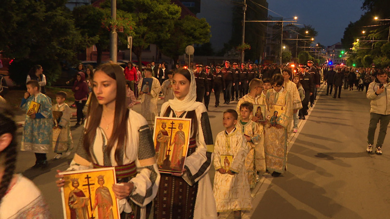 Câteva mii de persoane au participat, marți seara, la procesiunea organizată în zona centrală a municipiului Târgu Jiu cu ocazia sărbătoririi Sfinților Împărați Constantin și Elena, ocrotitorii spirituali ai orașului. Oamenii s-au strâns încă de la lăsarea serii la biserica ce poartă hramul celor doi sfinți, participând la slujba oficiată aici de un sobor de preoți. Circulația în zona procesiunii a fost blocată de autorități, mașinile fiind deviate pe străzi adiacente, fără a fi create probleme în trafic.