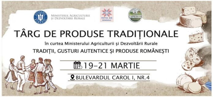 Începând de azi și până pe 21 martie, între orele 09:00 și 19:00, Ministerul Agriculturii și Dezvoltării Rurale (MADR), cu sprijinul Cooperativei Agricole Caprirom Sud Muntenia, organizează Târgul de produse tradiționale, un eveniment dedicat promovării gusturilor autentice și tradițiilor românești.