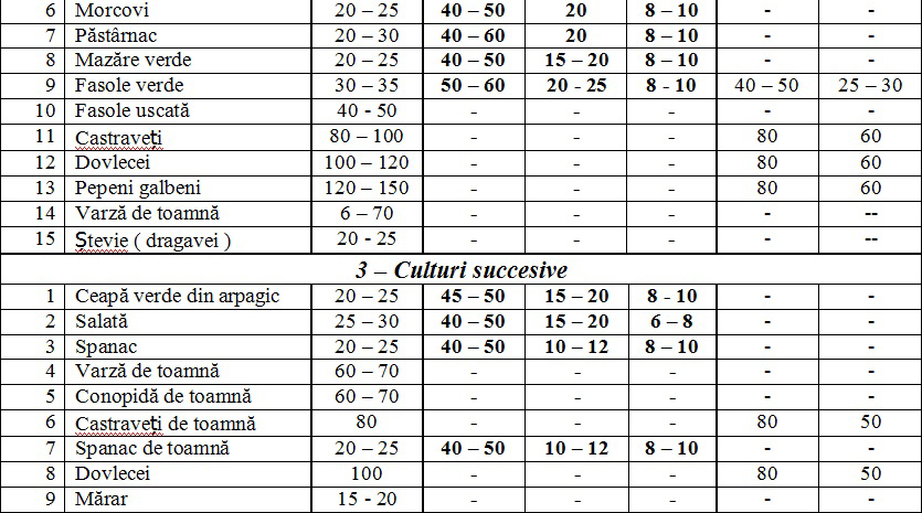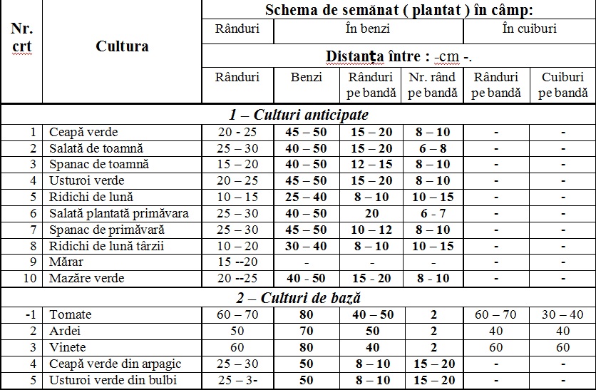 Precizăm acum cele mai potrivite scheme de plantat la legume: