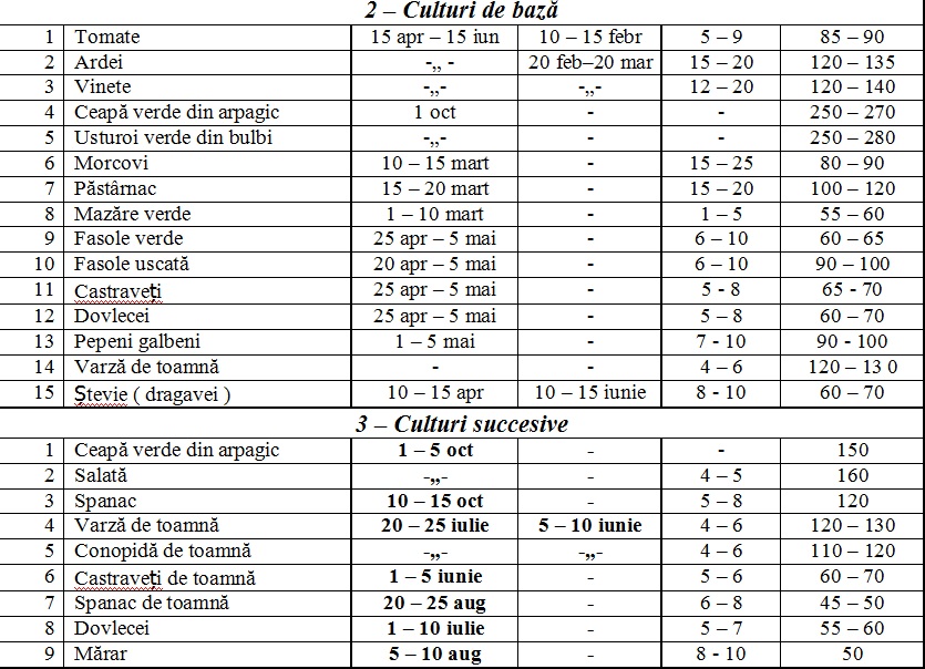 Iată cele mai potrivite epoci de semănat (plantat) și durata perioadelor de vegetație: