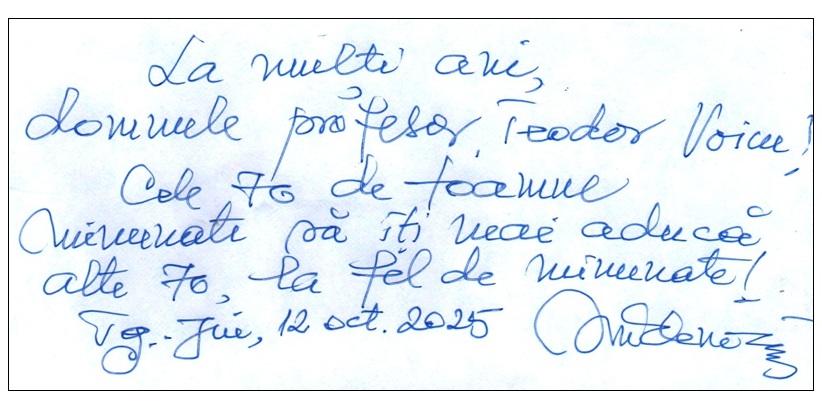 La Mulţi Ani, stimate Domnule Profesor, Teodor Voicu!