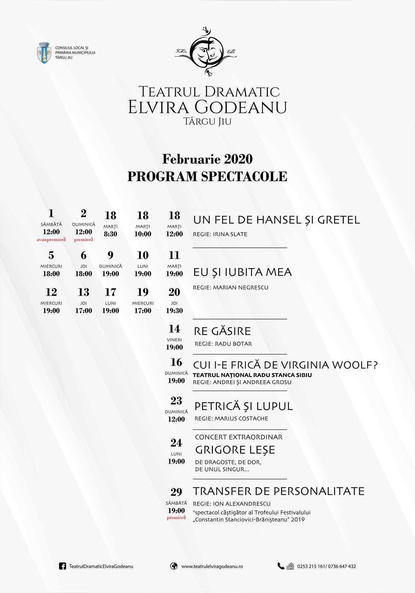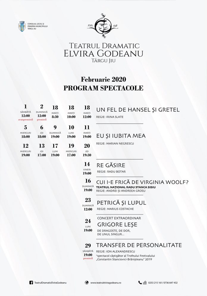 Programul lunii Februarie la Teatrul Dramatic „Elvira Godeanu” Târgu Jiu