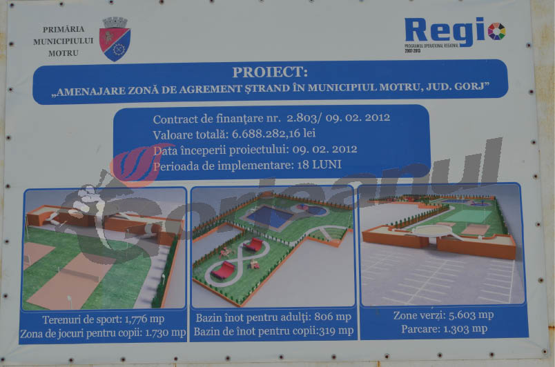 DSC_0017Primăria Motru intenţionează să pună în funcţiune la mijlocul lunii august Complexul de Agrement realizat în municipiu. Conferinţa de prezentare a rezultatelor proiectului “Amenajarea unei zone de agrement «Ştrand» în Municipiul Motru” a avut loc joi, în sala de şedinţe a primăriei. “Proiect finanţat în cadrul Programului Operaţional Regional (POR). Este un proiect al cărui obiective specifice ale domeniului de intervenţie sunt de măsură să ducă la valorificarea resurselor naturale locale în scop turistic şi crearea şi diversificarea activităţilor turistice în zonă precum şi crearea şi extinderea structurilor de agrement.