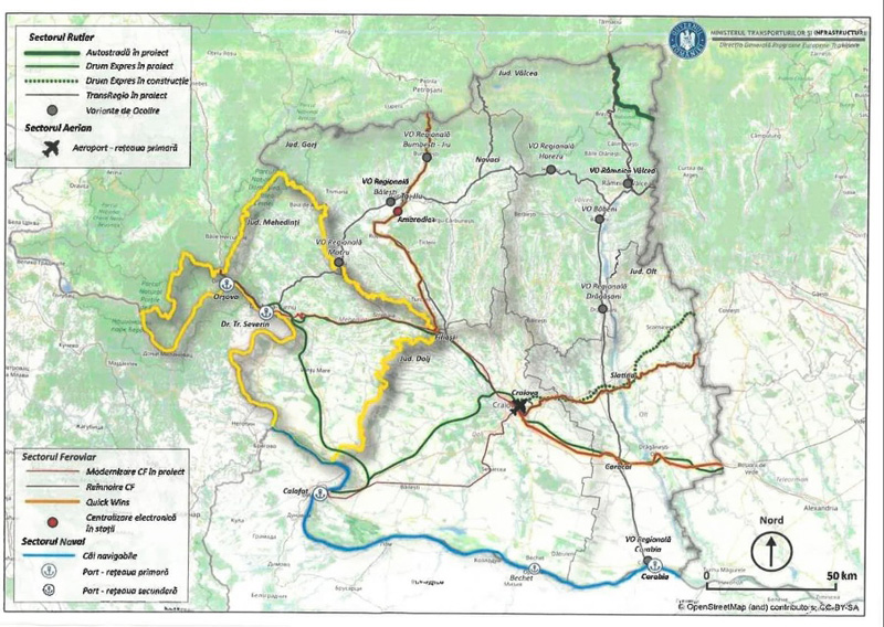Șeful Consiliului Județean Mehedinți, Aladin Georgescu, a anunțat pe contul său de socializare proiectul unui nou drum expres ce se va face în județul vecin și care are trecere prin Gorj, până la Vâlcea, spre viitoarea autostradă A1 ce va traversa Carpații. Alte informații oficiale despre acest proiect nu există deocamdată, dar, conform sursei citate, viitorul drum de mare viteză ar urma să facă legătura între Drobeta Turnu Severin – Târgu Jiu și Râmnicu Vâlcea. Despre Târgu Jiu se știe deocamdată doar că ar urma să fie legat de Craiova printr-un drum de mare viteză, despre care mai mulți responsabili ai puterii au dat asigurări constante în ultima vreme că „se va face”. Pe lista lui Aladin Georgescu se află însă și alte drumuri expres care ar urma să fie realizate în județul vecin între 2025 – 2029, după cum spune șeful CJ Mehedinți. Astfel, dacă drumul care ar uni Drobeta de Târgu Jiu are indicativul TransRegio DX6, cu o lungime de 185 km, cel care va uni Drobeta de Calafat are peste 72 km și niciun indicativ. Municipiul reședință din județul vecin ar urma să fie conectat și la viitoarea autostradă despre care ministrul transporturilor, Sorin Grindeanu, a vorbit recent dintre Craiova și Lugoj, drumul respectiv fiind prezentat de Aladin Georgescu drept Drumul Expres Filiași – Drobeta Turnu Severin – Caransebeș – Lugoj, aflat în faza de elaborare a studiului de fezabilitate. Aladin Georgescu menționează că drumul expres dintre Drobeta și Calafat va costa 284 de milioane de euro, proiectul fiind menit să asigure dezvoltarea durabilă a județului vecin. Traseul respectiv este extrem de aglomerat de camioanele care transportă marfă spre sau dinspre vestul țării, aproape zilnic pe șoselele din Mehedinți având loc accidente grave generate de neatenția șoferilor și de numărul mare de participanți la trafic. Pe lângă proiectele mari de infrastructură rutieră, Aladin Georgescu vorbește și despre o investiție de 2 miliarde de euro menită să ducă la modernizarea căii ferate între Craiova – Drobeta și Caransebeș, pe o lungime de 234 km, dar și modernizarea porturilor din Orșova și Drobeta Turnu Severin. Singurul lucru cert în momentul de față pentru regiunea Olteniei îl reprezintă deschiderea circulației în următoarele zile pe ultimele două loturi de pe Drumul Expres dintre Craiova și Pitești. Ministrul Sorin Grindeanu a anunțat de mai mult timp acest lucru, acum acesta prezentând imagini cu probele care erau făcute marți la rețeaua de iluminat public de pe drumul de mare viteză. Drumul respectiv devine o alternativă pentru gorjenii care vor să meargă la București și vor să scape de aglomerația de pe tradiționalul traseu Târgu Jiu – Râmnicu Vâlcea – Pitești. Varianta pe Craiova este cu câțiva zeci de kilometri mai lungă pentru cineva care pleacă la drum din Târgu Jiu, însă drumul e parcurs fără probleme, în condiții de mare viteză, până acum nefiind înregistrate valori mari de trafic pe tronsoanele date în funcțiune.