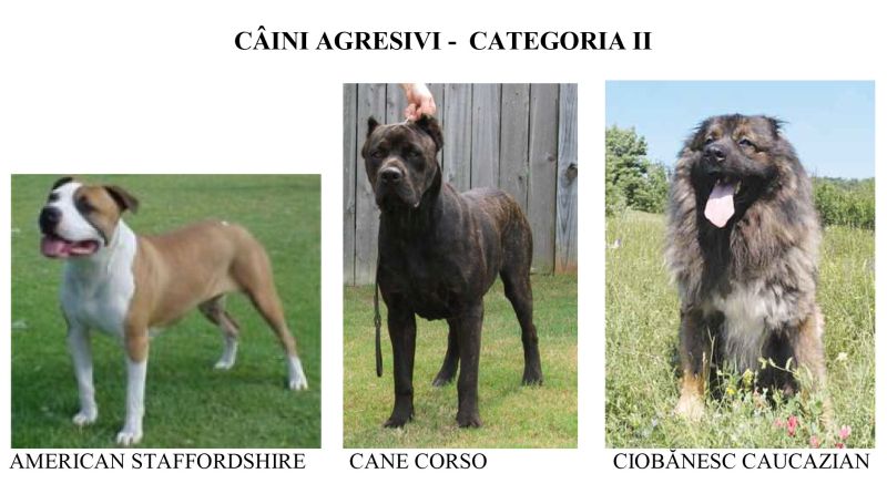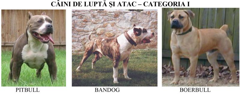 Câinii periculoşi sunt cei care aparţin raselor grupate în două categorii. Din prima categorie fac parte câinii de luptă şi de atac, asimilaţi prin caracterele morfologice cu câini de tipul Pit Bull, Boerbull, Bandog şi metişii lor și categoria a II-a: câinii din rasele American Staffordshire Terrier, Tosa, Rottweiller, Dog Argentinian, Mastino Napolitano, Fila Brazileiro, Mastiff, Ciobănesc Caucazian, Cane Corso şi metişii lor. Prin câini agresivi se înţelege orice patruped care, fără să fie provocat, muşcă sau atacă persoane ori animale domestice în locuri publice sau private.