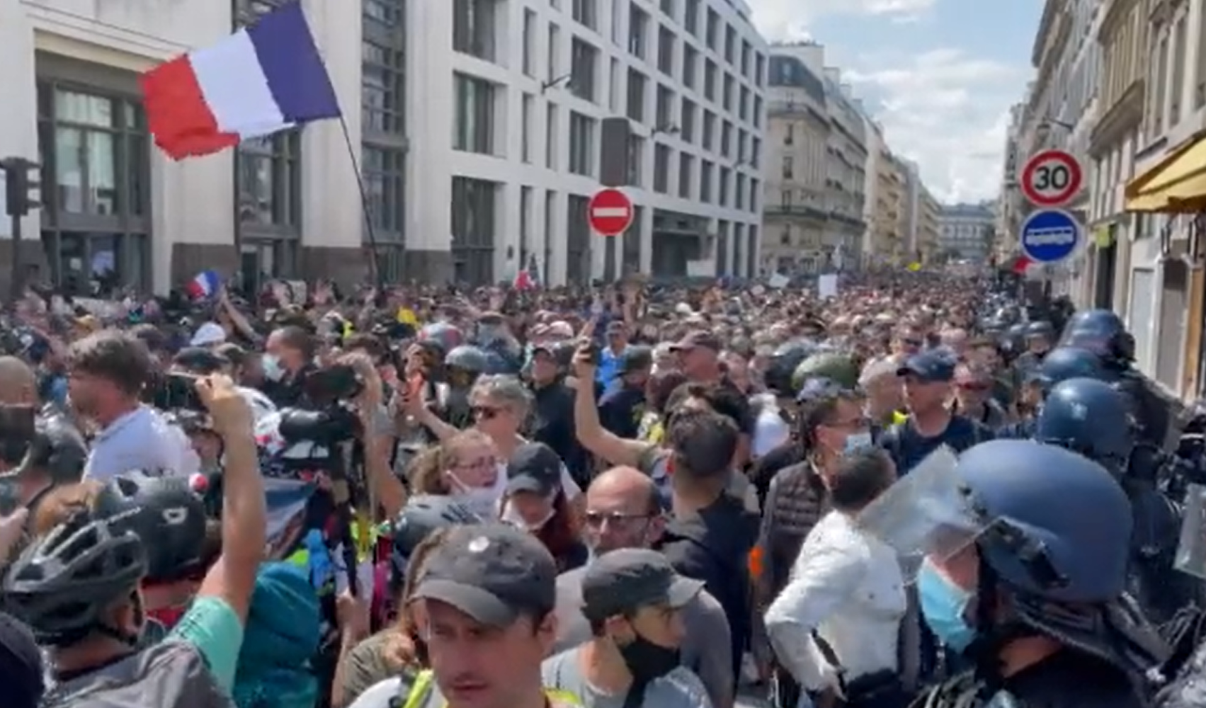 Protestele paşnice de la Paris au fost parţial afectate de unele ciocniri minore. O maşină şi câteva coşuri de gunoi au fost incendiate, iar forţele de poliţie au folosit gaze lacrimogene şi grenade asurzitoare în încercarea de a dispersa elementele mai radicale din rândul protestarilor.