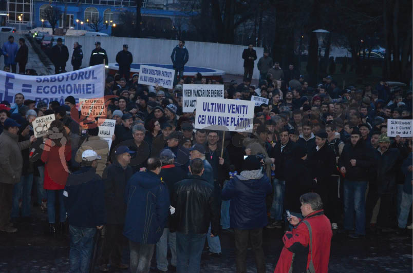 Acţiunea de protest organizată ieri, în Piaţa Prefecturii din Târgu-Jiu, de către Federaţia Naţională Mine Energie(FNME) s-a bucurat de un număr mult mai mare de salariaţi ai Complexului Energetic Oltenia, decât au estimat organizatorii. Cel puţin o mie de angajaţi ai CEO s-au adunat, potrivit unuia dintre liderii FNME, să scandeze lozinci, prin care să atragă atenţia că structura, cea mai importantă din Gorj, se îndreaptă spre colaps. Mitingul era autorizat pentru 500 de protestatari.