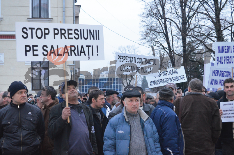 În piaţă s-a scandat, ieri, de mai multe ori, în special ,,Jos Ciurel”, protestatarii arătând că sunt supăraţi, mai ales pe managerul CEO. Au spus-o fără menajamente şi sindicaliştii Federaţiei Univers. ,,Sunt omul care am trecut prin multe cu minerii, dar, pentru prima dată, mineritul este în pericol de moarte. Nu acceptăm să pierdem niciun drept, drepturile au fost câştigate, cu sacrificii, de-a lungul anilor”, a declarat Constantin Creţan, liderul FNM. ,,Am venit protest fnme (1)aici ca să ne recâştigăm <<accesorile>>, după cum spune Ciurel, să nu ni se poată lua drepturile noastre iar numele de miner să fie pus acolo unde trebuie. Noi suntem mineri nu meseriaţi, suntem oameni care muncim în noroaie şi în condiţii foarte grele”, a declarat şi sindicalistul Nicu Bunoaica. ,,Noi am organizat venirea a 500 de mineri dar, după protest fnme (2)cum vedeţi, aici sunt peste o mie. Asta, în condiţiile în care la carierele unde sunt sindicate reticiente, oamenii sunt ţinuţi acolo. Sunt convins că, peste câteva zile, vor veni toţi în stradă. Pentru că niciun miner sau energetician nu cred că îşi doreşte să i se scadă veniturile cu 20% când, anul acesta, trebuie să dea mai multă producţie şi de energie protest fnme (3)şi de cărbune. Asta în timp ce managerul CEO, care ne duce spre faliment, câştigă cu 20% în plus. Nu îi ajunge 10.000 de euro, vrea mai mult”, a declarat şi liderul FNME, Dumitru Pârvulescu. ,,Din ce în ce în ce mai mulţi salariaţi ai companiei au părăsit în masă sindicatele galbene, sindicatele aservite administraţiei care s-au format cu protest fnme (4)un singur scop, acela de a reduce aceste drepturi salariale după cum au fost prezentate în ultima săptămână; acesta e rezultatul imixtiunii administraţiei în rândul sindicatului. Principala noastră revendicare este demiterea directorului general şi a comitetului director. Dacă nu, ajungem până la grevă generală”, a completat şi sindicalistul FNME, Constantin Mitrescu.