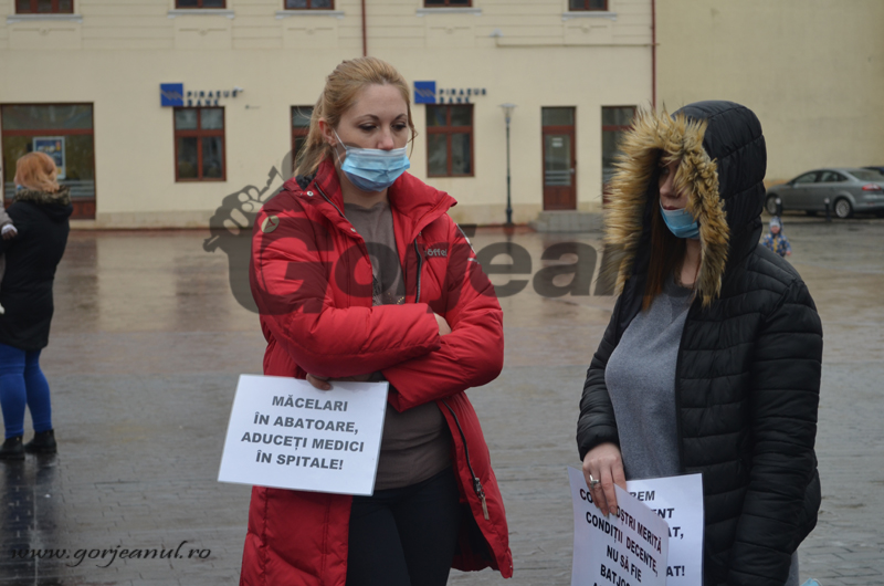 Zeci de mămici din Târgu-Jiu au protestat, ieri, în Piaţa Prefecturii. Peste 60 de femei, unele însoțite de copii, și-au exprimat nemulțumirile față de condiţiile din spitalele din Gorj. Acestea au purtat măști, solicitând condiţii decente în unitățile medicale.