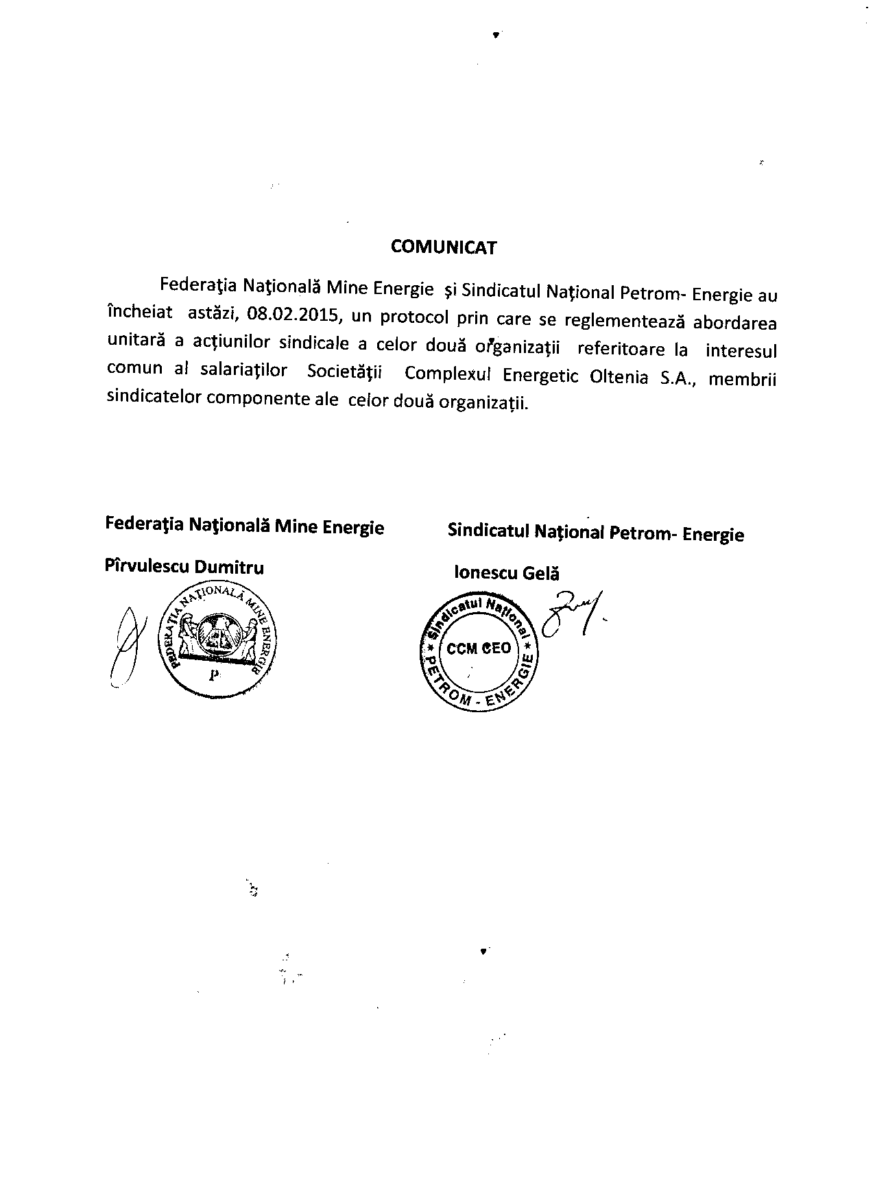 FNME și Sindicatul Național Petrom-Energie au încheiat un protocol în interesul salariaților din CEO.