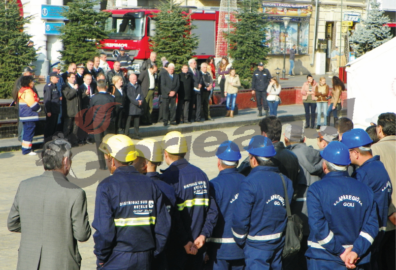 Cu o punctualitate „nemţească” sirena de pe hotel a anunţat începerea simulării şi implicit intrarea succesivă a formaţiunilor şi serviciilor în dispozitivele stabilite şi debutul acţiunilor ce se impun la acest fel de dezastre. Am făcut câteva fotografii la diferitele forţe în acţiune fie că au fost pompieri, SMURD, Serviciul Judeţean de Ambulanţă, SNCR, filiala Gorj ori furnizorii locali de utilităţi (ApaRegio, Edilitara, Distrigaz ori Electrica) şi sincer să fiu am fost plăcut impresionant să constat că au intrat cu calm fiecare pe locul său, iar echipele au simulat intervenţia la diversele tipuri de avarii ce se pot declanşa după o mişcare telurică (trebuie să fac iarăşi precizarea că vorbim despre o simulare, într-un caz real lucrurile iau altă întorsătură, dar ţările unde după un seism adevărat se înregistrează cele mai puţine victime sunt acelea unde se rulează programe de simulări bine puse la punct, să nu mai vorbim de politica antiseismică din construcţii, iar aici prima dată îmi vine în minte Japonia unde cetăţenii iau contact cu aceste lucruri încă din primii ani de viaţă).