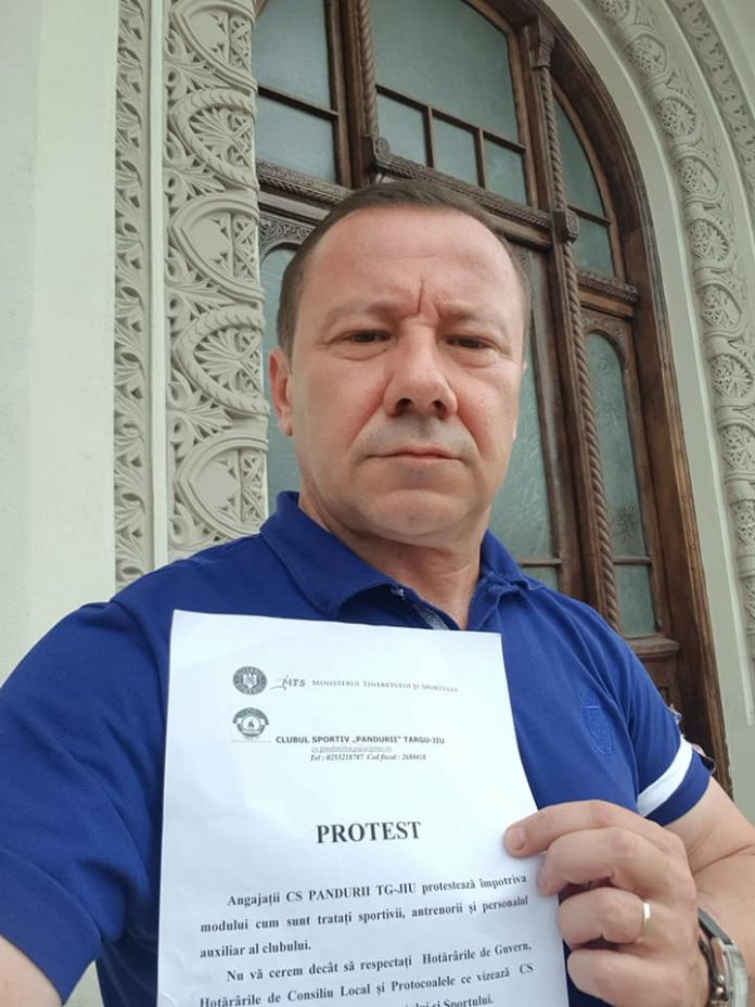 Președintele Clubului Sportiv Pandurii Târgu-Jiu continuă protestele. Mihai Prunariu merge, zilnic, în fața sediului Primăriei Municipiului Târgu-Jiu pentru a-și declara nemulțumirea față de autoritățile locale, în ceea ce privește finanțarea clubului sportiv. Aceasta este a doua săptămână de proteste.