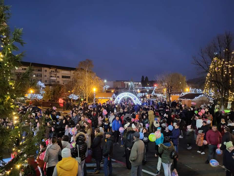 De altfel, ieri, la ora 17.00, au fost aprinse instalațiile de iluminat care se întind pe zece kilometri în municipiu, instalațiile din cei șapte brazi naturali și bradul electronic.