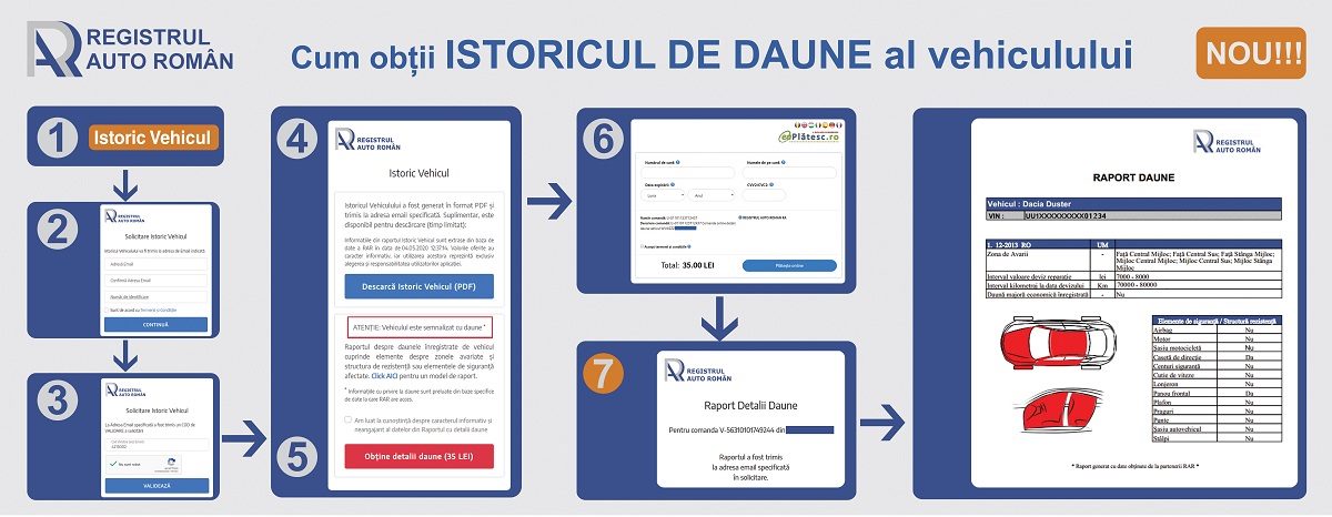 Acesta conține informații despre zona de avarii, inclusiv poziționarea acestora pe un vehicul – machetă; intervalul valorii devizului de reparație; intervalul indicației odometrului la data întocmirii devizului; dacă a fost o daună majoră din punct de vedere economic; dacă au fost afectate principalele elemente de siguranță sau din structura de rezistență.RAR precizează că toate informațiile introduse în sistemul informatic, pentru a afla datele solicitate, sunt protejate conform normelor incluse în Regulamentul General de Protecție a Datelor cu Caracter Personal (GDPR).