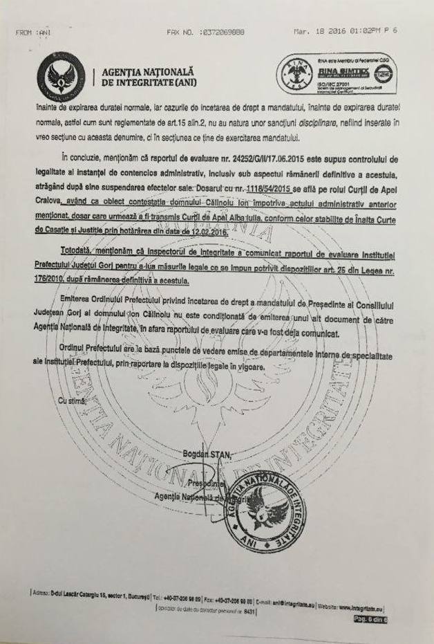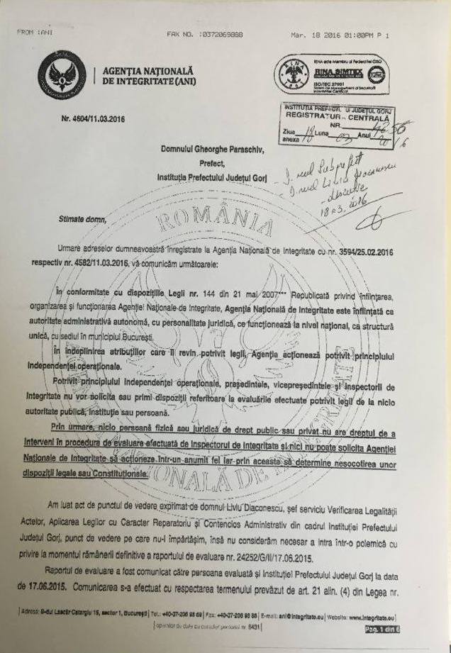 Iată răspunsul Agenției Naționale de Integritate, primit de Instituția Prefectului –Județul Gorj, astăzi, 18.03.20161 2 3 4 5 6