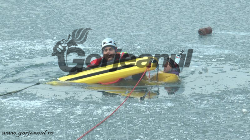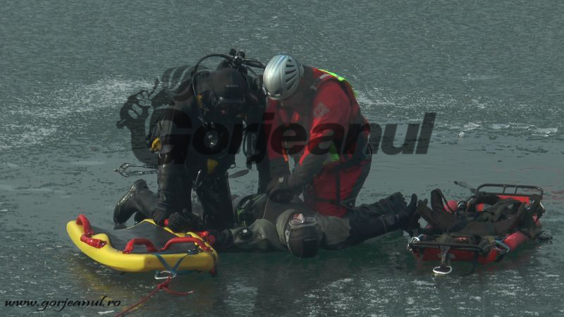 termică a accidentatului şi a salvatorilor, transferul accidentatului către serviciul de Ambulanţă/SMURD şi transportul la prima unitate medicală. “Am simulat trei exerciții de salvare cu persoane surprinse pe suprafețe acvatice, la suprafață, surprinse în gheațã sau sub calota de gheață. Am încercat să intervenim cât mai repede pentru cã temperaturile sunt foarte scãzute, iar șansele de supraviețuire ale victimelor depind de intervenția foarte rapidă. Eu cred cã am corespuns așteptãrilor pe care le aveam de la echipa mea, nu am fãcut nicio repetiție înainte, s-a discutat totul doar teoretic. Am folosit trei tipuri de echipamente pentru cele trei tipuri de salvãri, am folosit și echipament de scufundare sub apã și echipament de protecție termicã la nivelul apei înghețate și la gheațã spartã și echipament pentru lucrul