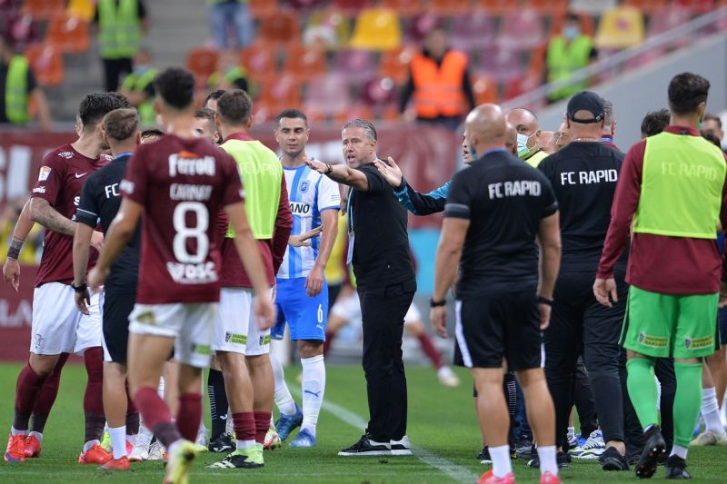 Universitatea Craiova a provocat Rapidului prima înfrângere în acest sezon din Liga 1. Elevii lui Laurenţiu Reghecampf s-au impus pe final de meci, cu două goluri marcate de atacanţii Jovan Markovic (`82) şi Elvir Koljic (`90+1). Cristian Albu deschisese scorul pentru giuleșteni după doar un sfert de oră, dar Belu Iordache a văzut al doilea cartonaş galben în minutul 43, iar gazdele au evoluat în inferioritate numerică. În partea a doua, până la finalul confruntării, antrenorul Craiovei a mizat pe un sistem ultra ofensiv, 2-4-4, iar oaspeții au întors meciul.