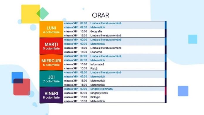 Începând de mâine, televiziunea publică va relua programul Teleșcoala, destinat elevilor din anii terminali de gimnaziu și liceu care nu au acces la cursuri cu prezență fizică și/sau online. Potrivit realizatorilor, orarul celui de-al patrulea sezon include cursuri noi și o surpriză în zilele de vineri. Programul Teleșcoala fost introdus de TVR în primăvara anului 2020.