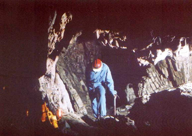 Ajungem în prima sală, mică dar unde ne putem regrupa şi ,,trage sufletul”. De aici pornesc mai multe galerii una spre V, alta spre SE şi ultima spre NE ce pare să ne poarte către finalul peşterii. Galeria nu mai înaltă de 2 m sub formă de tub de presiune după aprox. 30 m şi parcurgerea unei noi galerii-laminor înaltă de 40 cm ne duce în a doua sală plină cu roci prăbuşite. Şi din această sală se ramifică trei galerii una spre NE care după câţiva metri se colmatează, a doua spre NE şi ea colmatată după aprox.10 m iar a treia pe direcţia SV ce continuă având o înălţime de 2,5 m şi o lăţime de 50-60 cm şi unde după parcurgerea a 35 m ajunge în a treia sală.