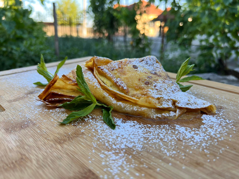 Prăjim clătitele pe ambele părți, apoi le lăsăm, pe o farfurie, la răcit.