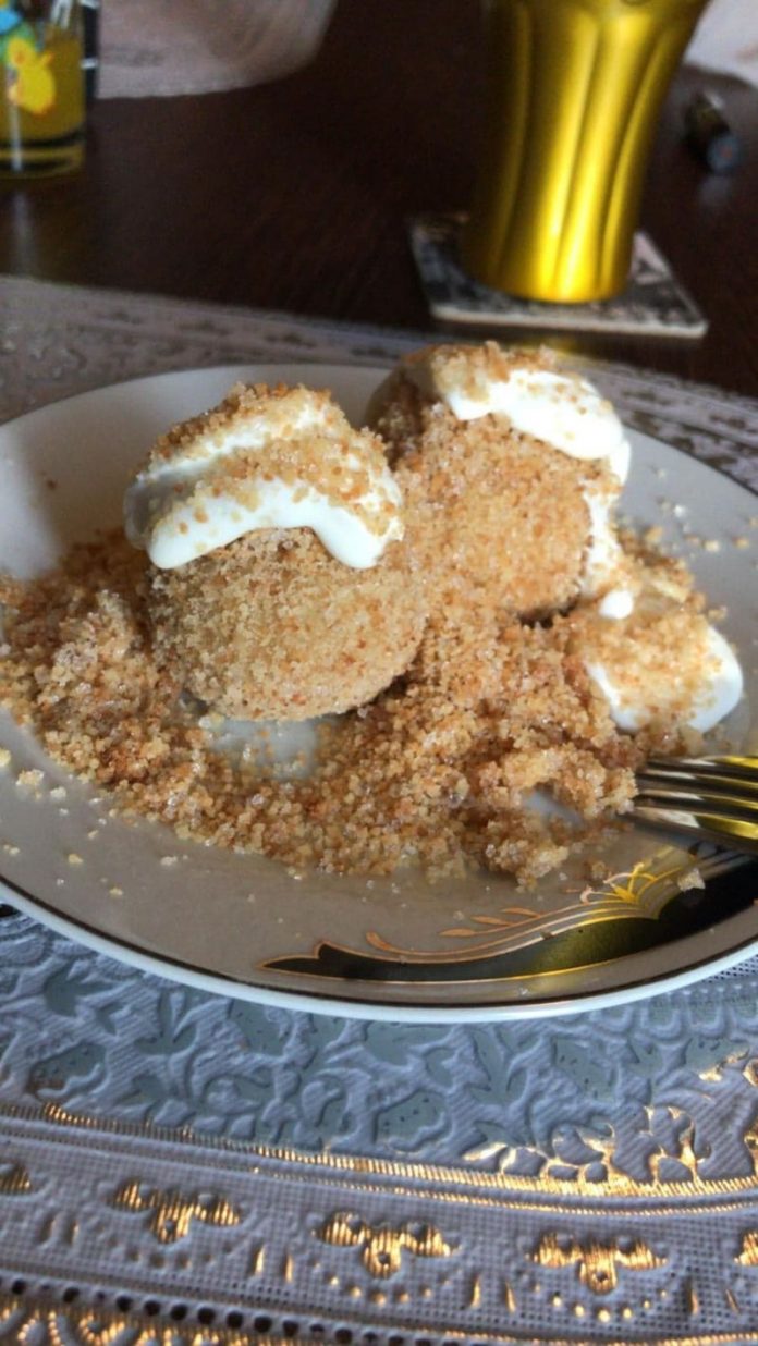 6. Într-o tigaie rumenim pesmetul după care se amestecă cu restul de zahăr aromatizat cu scorţişoară, care a rămas de la umplerea prunelor. Găluştele cu prune se trec prin unt topit şi apoi prin pesmet.