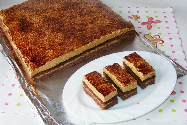 Deasupra se cerne puțin ness. Se pune la frigider minim 2 ore înainte de a felia prăjitura.