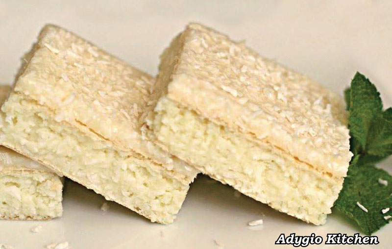 Se pune o cratiță la foc unde se va pune laptele condensat cu frișca lichidă.Se amestecă și se adaugă nuca de cocos și laptele praf. Se amestecă energic cam o jumătate de minut, după care se ia de pe foc. Se toarnă compoziția peste foaia de napolitană, se distribuie uniform și se pune foaia de napolitană peste. Se acoperă și se presară cu un fund de lemn. Se pune ciocolata albă la topit și se adaugă frișca lichidă. Se amestecă puțin și se stinge focul. Se pune glazura peste prăjitură și se presară nuca de cocos.