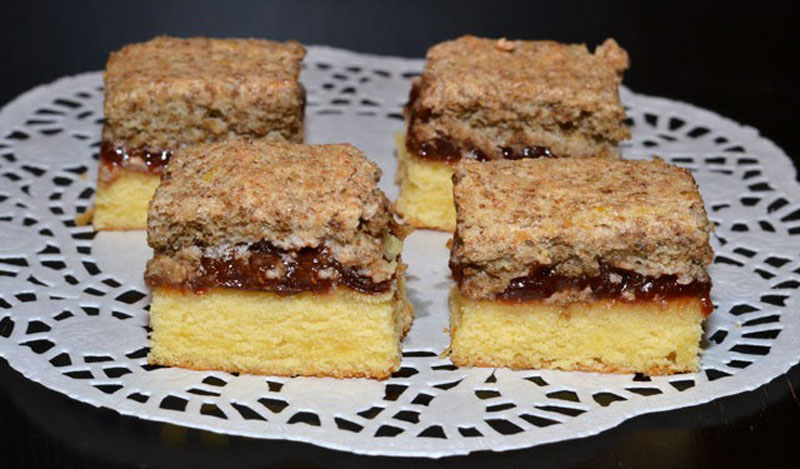 500 g făină, 2 ouă, 60 g zahăr cristal, 1 linguriță praf de copt, 1 lingură pudră de cacao, 150 g unt sau margarină, 50 g ciocolată, 1 lingură gem de afine