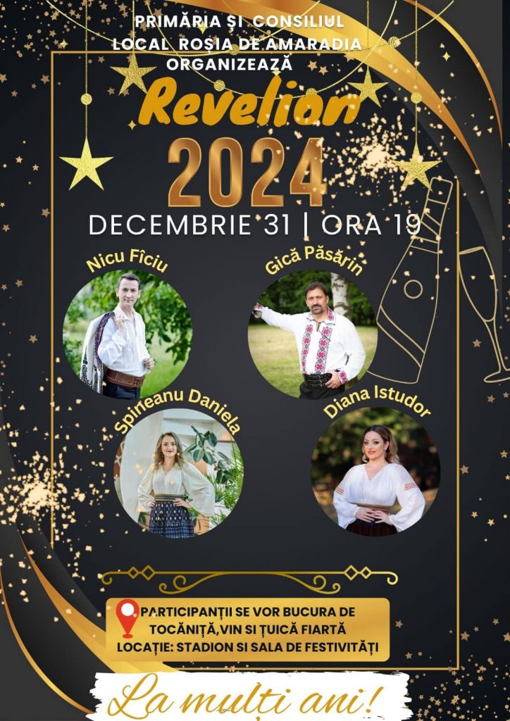 Va fi petrecere mare în noaptea dintre ani în comuna gorjeană Roșia de Amaradia. Autoritățile le-au pregătit localnicilor un foc de tabără, un spectacol de muzică populară, tochitură, berbec la proțap, țuică și vin fiert din belșug.