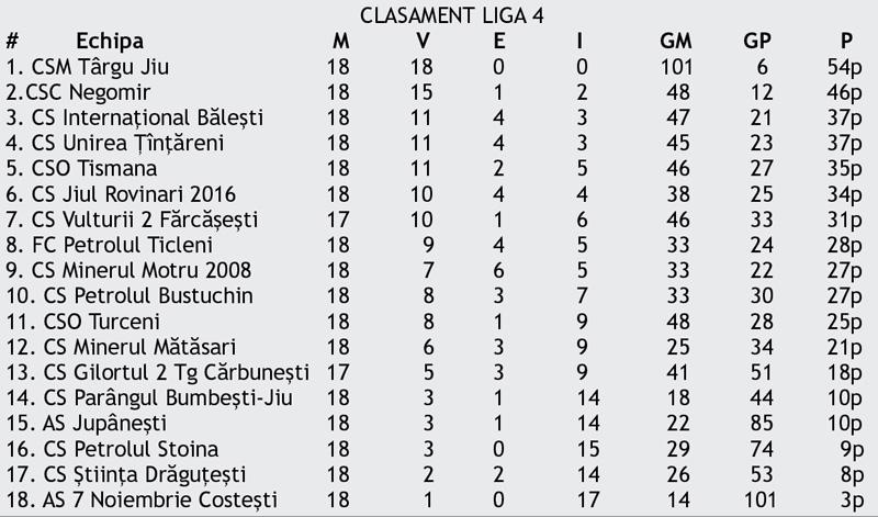 CSM Târgu Jiu debutează, pe teren propriu, în 2025 într-un joc cu Minerul Mătăsari. Liderul Ligii 4 vine după victoria de la Petrolul Stoina, unde a pierdut trei jucători. Bogdan Brășfăleanu, Luci Marina și Nicholas Geană vor fi suspendați, în timp ce alți fotbaliști ai gazdelor încă mai au probleme cu accidentările. Antrenorul Mario Găman speră ca toți cei trimiși în teren să profite de șansa primită. În tur, târgujienii s-au impus dramatic, pe final de meci.