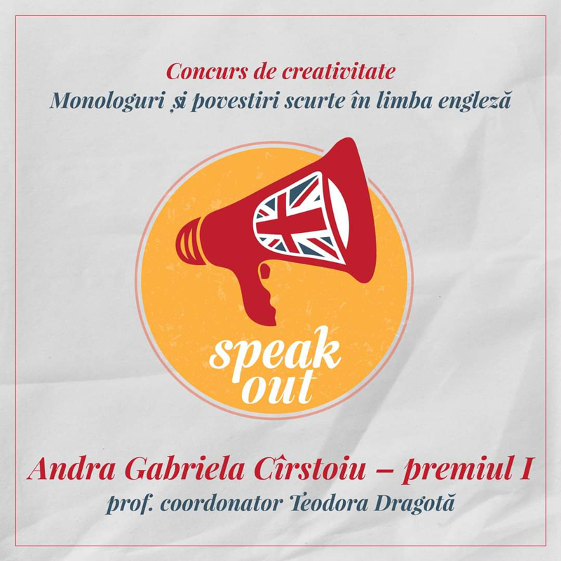 Colegiul Național ,,Tudor Vladimirescu” anunță performanța elevei Andra Gabriela Cîrstoiu, care a obținut premiul I la Concursul Național „Speak Out”- secțiunea monolog în limba engleză dar și calificarea la etapa națională. Profesorul coordonator al elevei este Teodora Dragotă. „Speak Out” este un concurs de creativitate / Monologuri și povestiri scurte în limba engleză ajuns la ediția a XV-a. Aceeași elevă a obținut rezultate excelente și la Olimpiada de Matematică, Faza Județeană. Andra Gabriela Cîrstoiu a obținut premiul II și calificarea la națională. Din lotul calificat la națională mai fac parte zece elevi, majoritatea de la CNTV.
