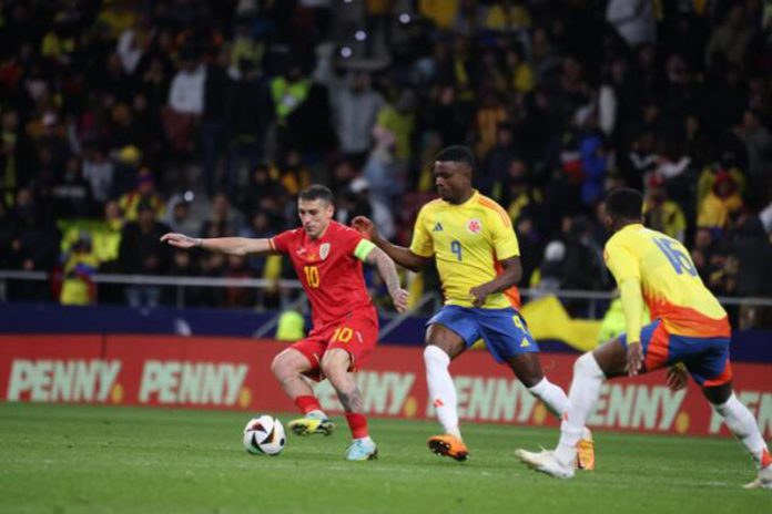 Naţionala de fotbal a României a fost învinsă de reprezentativa Columbiei cu scorul de 3-2 (2-0), marţi seara, pe Stadionul Civitas Metropolitano din Madrid. Jhon Cordoba (6), Jhon Arias (35) şi Yaser Asprilla (79) au înscris pentru un succes mai concludent decât o arată scorul, dar elevii lui Edward Iordănescu și-au salvat onoarea pe final, când au punctat de două ori, prin Ianis Hagi (84) şi Florin Tănase (90+4). Sud americanii le-au stricat tricolorilor o serie de 12 partide fără înfrângere. Totuși, superioritatea formației adverse nu poate fi contestată, jocul prestat de adversara României fiind unul mai dinamic și mai combinativ. A fost prima victorie din istorie pentru columbieni în duelurile directe. ,,Los Cafeteros” pierduseră în fața compatrioților noștri de două ori la Cupa Mondială. Un alt meci amical, disputat în SUA, se încheiase la egalitate. Aproximativ 20.000 de spectatori români au fost prezenți în tribunele stadionului madrilean.