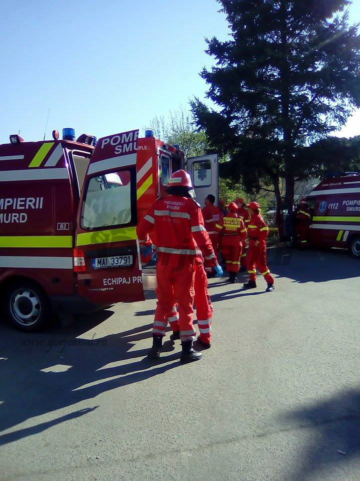 A fost o zi destul de agitată, ieri, la Spitalul Județean de Urgență Târgu-Jiu, după ce mai multe echipaje ale pompierilor și SMURD au intervenit aici după un apel la 112. Solicitarea a fost făcută în cadrul unui exercițiu ce a vizat simularea producerii unui cutremur ce a dus la prăbușirea unui plafon, la declanșarea unui incendiu și la prinderea unor persoane sub diverse obiecte căzute în timpul mișcării scoarței terestre. Sirenele echipajelor de intervenție s-au auzit prin tot orașul, mulți dintre trecători sau chiar cei aflați în curtea spitalului neștiind despre ce este vorba. Oamenii erau convinși că există o situație reală, care impune intervenția forțelor specializate. “Eu crezui că arde tot orașul când văzui atâtea mașini. Bine că nu e nicio problemă mai gravă și bine că fac exerciții din astea că ne mai dau și nouă curajul. Doamne ferește să se întâmple în realitate ceva de genul ăsta că nu am vrea să știm cum este”, a spus un pensionar aflat în curtea spitalului.