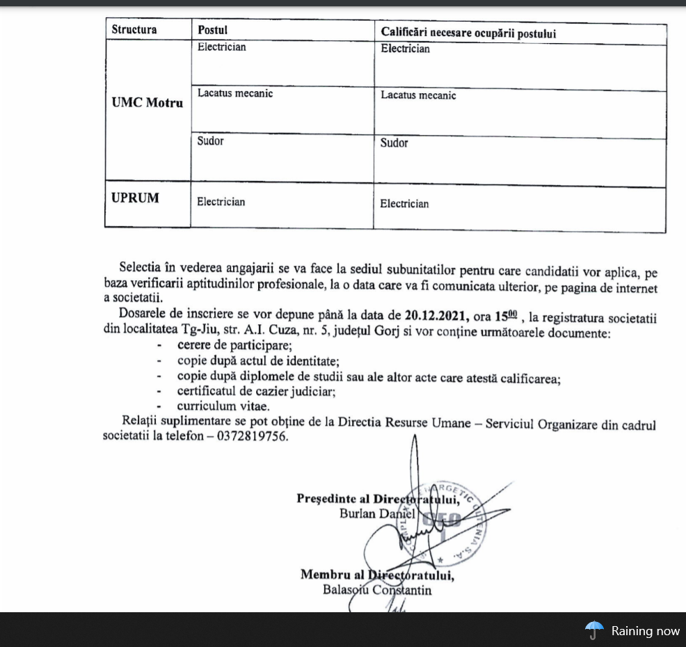 Bună dimineața am depus și eu o cere la dumneavoastră pentru angajeri la complexul energetic turceni