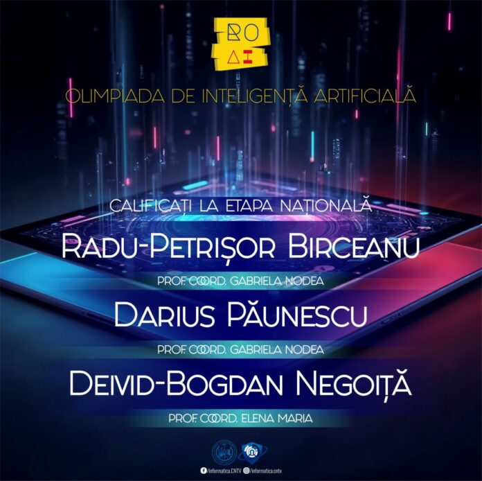 Trei elevi de la Colegiul Național „Tudor Vladimirescu” din Târgu Jiu s-au calificat la etapa națională a Olimpiadei de Inteligență artificială.
