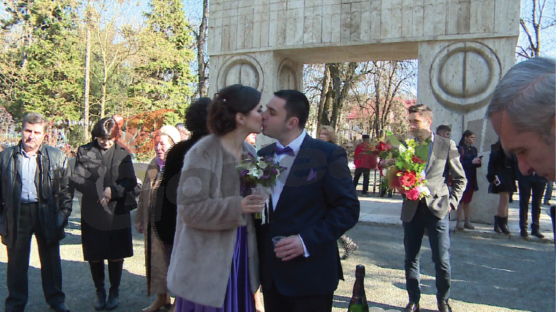 casatorii 14 februarie poarta sarutului (1)Cuplul din Caracal care a venit însă la Târgu-Jiu, nu a părut nici pe departe ca fiind pregătit pentru un asemenea moment, mirele și mireasa au fost foarte lejer îmbrăcați, în blugi, giacă, bocanci, fără să aibă o ținută mai aleasă. Explicația lor a fost însă extrem de simplă. “Noi ne iubim și asta contează cel mai mult. De aici plecăm direct la munte ca să sărbătorim căsătoria și nu aveam cum să venim la costum sau haine festive pentru că la munte și așa ne trebuie haine mai groase și nu aveam cum să ne cărăm cu toate după noi”, a spus Denis Catena, mirele din Caracal. Acesta a povestit, că a venit cu soția sa de mai multe ori la Târgu-Jiu, pentru a o aduce la Poarta Sărutului și a-i mărturisi iubirea pe care o poartă, plimbările lor prin Parcul Central, fiind și motivul pentru care au ales să își unească destinele aici.